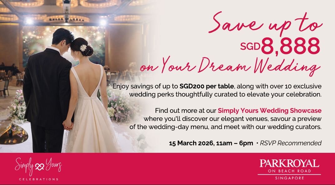 Join PARKROYAL on Beach Road at their Wedding Showcase and experience an exclusive preview of your special day. Discovery their elegant pillarless ballrooms, savour a curated wedding menu tasting and meet their wedding curators for a personalised guidance to bring your dream celebration to life.