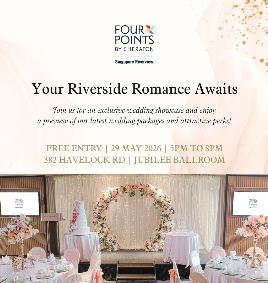 Where your wedding story begins Experience an intimate wedding workshop at PARKROYAL on Beach Road's Sky Ballroom, styled to inspire and designed for meaningful conversations with our wedding curators. Enjoy exclusive privileges, including savings of up to S$200 per table and curated wedding perks — all thoughtfully put together for a celebration that’s Simply Yours. Drop by on 19 April 2026 from 9am to 4pm to meet with their Wedding Curators for a personalised consultation. RSVP to receive a complimentary SGD50 nett spa voucher as their special gift to you while you embark on this beautiful journey!