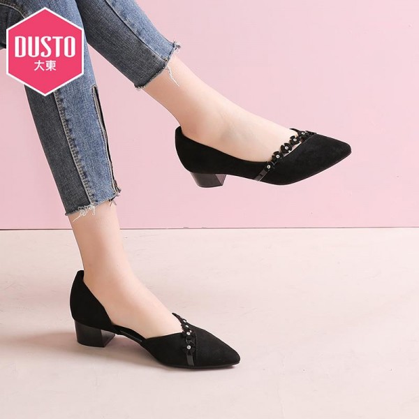 Featuring an eye-catching rhinestone floral embellishment, the Eliane Low Heels are a fashionable change from the usual footwear. The low heels and pointed toe allows it to transition from day to night seamlessly. Available in both beige and black.