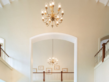 A high-neck illusion bodice adds vintage elegance to a fit-and-flare silhouette cloaked in classic lace. The gown’s sculpted corset cinches the waist, while an oversized tulle bow and cathedral veil bring grandeur to this refined look.