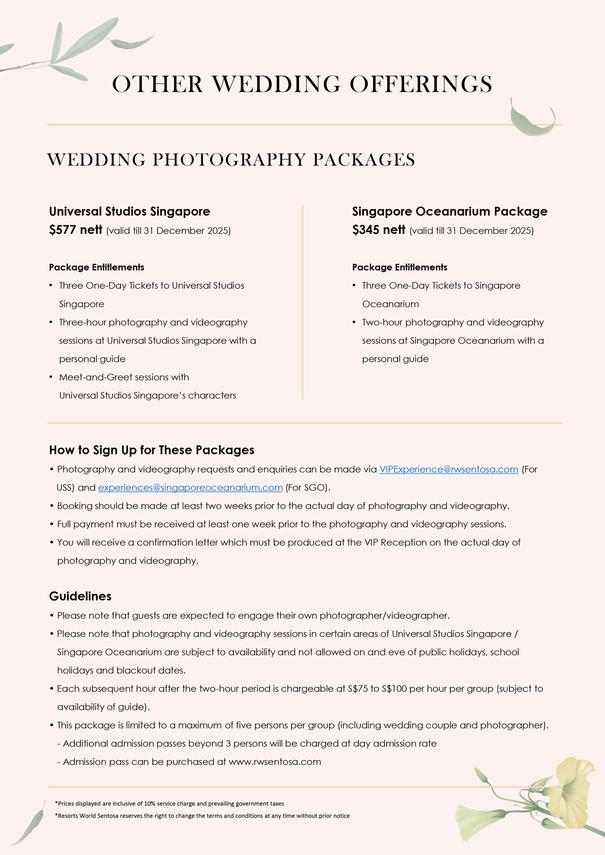 Ocean Gallery Wedding Packages 2025 & 2026