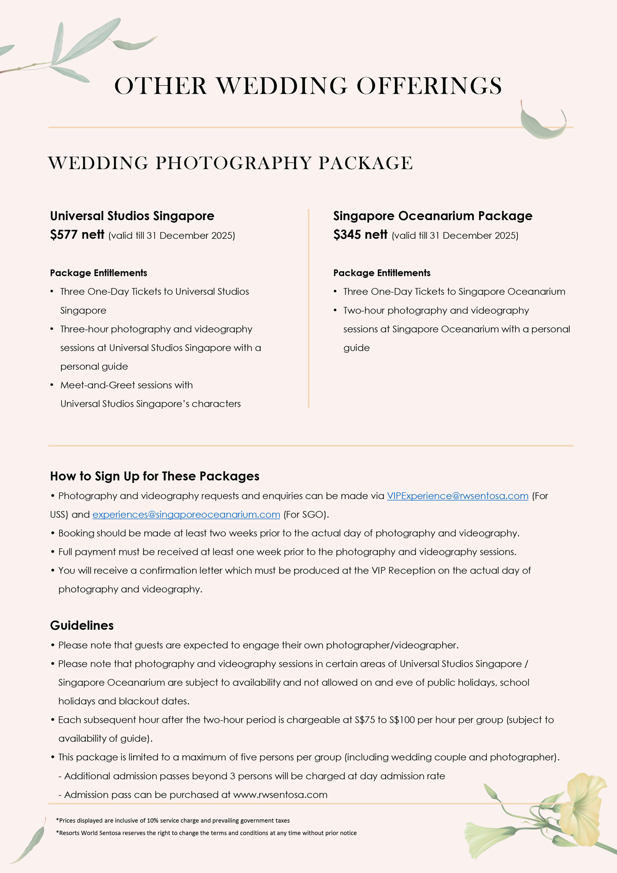 Universal Studios Singapore Wedding Packages 2025
