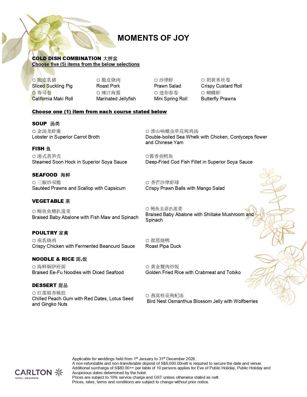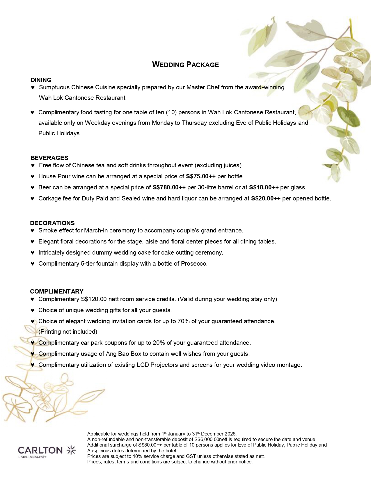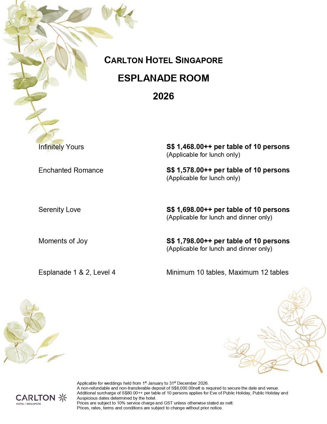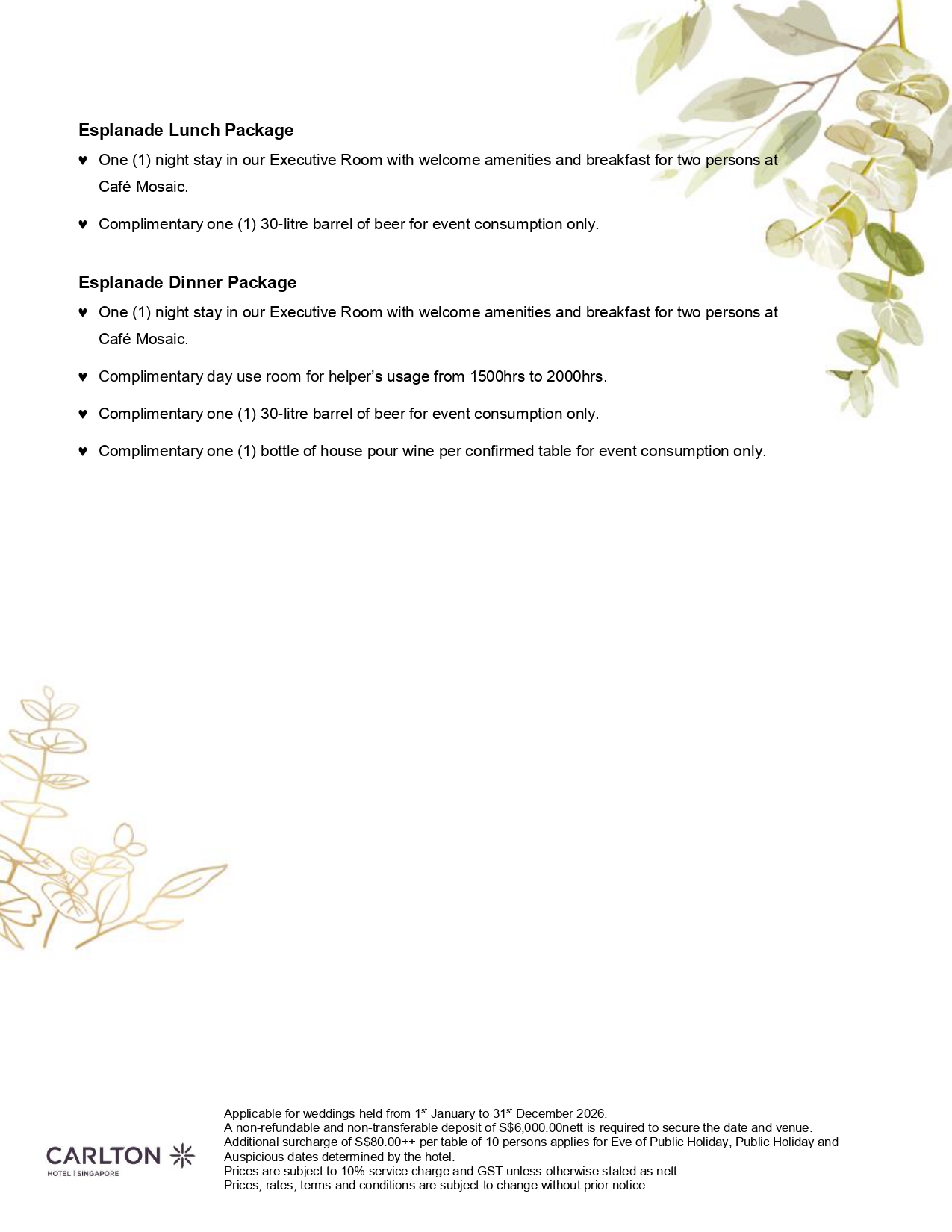 Esplanade Wedding Package 2026