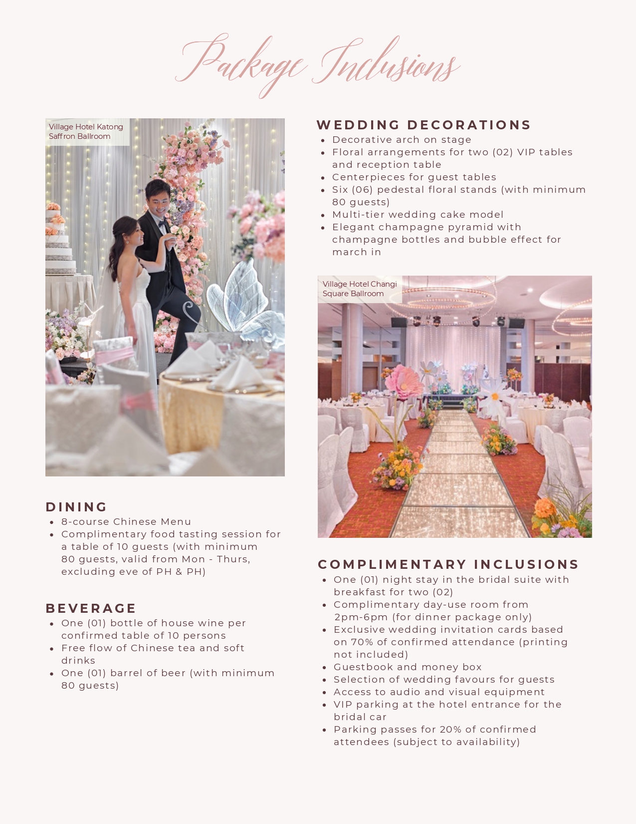 BANQUET PRICE LIST