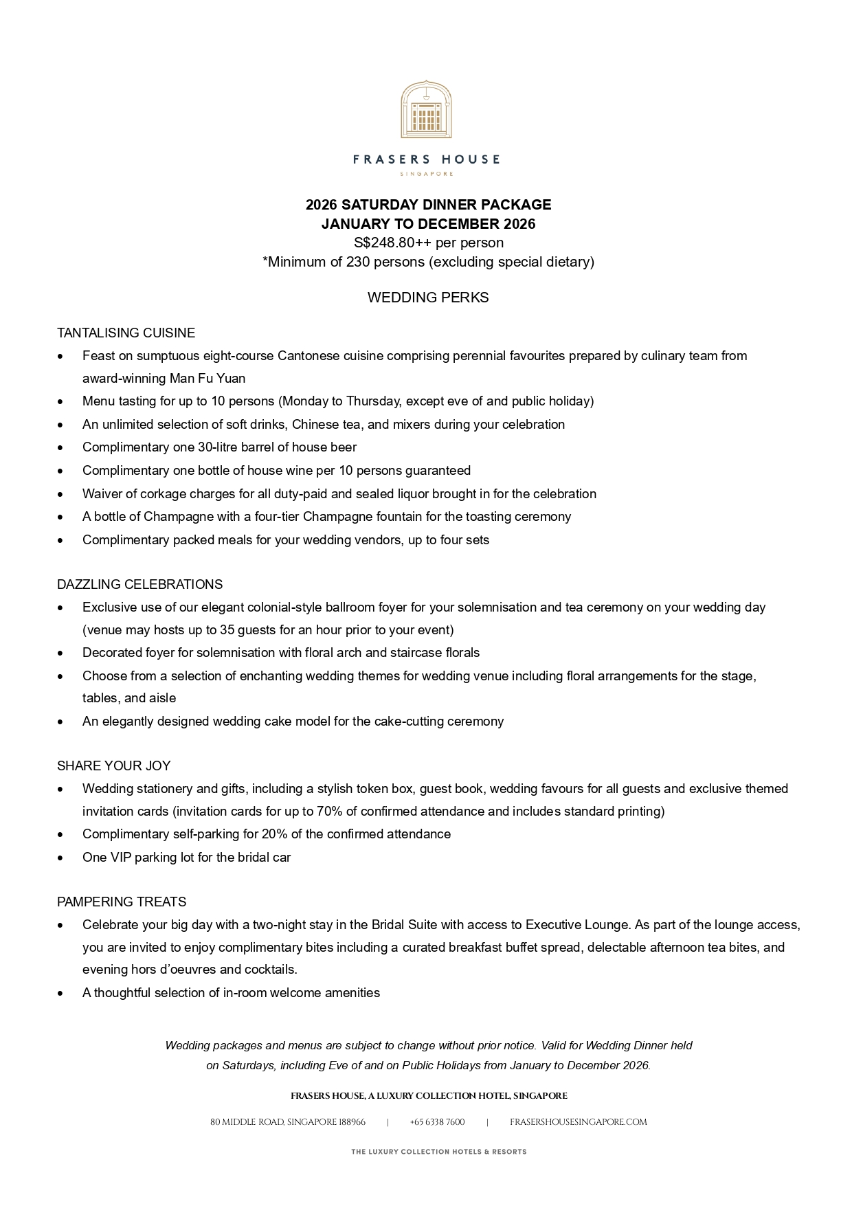 Grand Ballroom 2026 Saturday Dinner Package