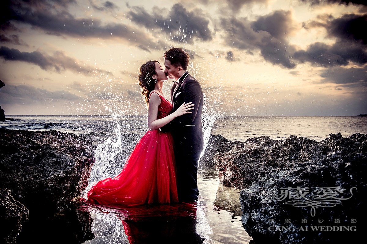 Natural beauty of Kenting with a striking red evening gown. A perfect combination.
